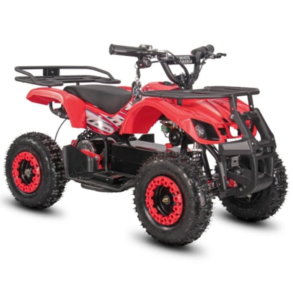 Электроквадроцикл устойчивый на ровной поверхности. Дает возможность максимального разгона, начального понимания скорости и участии в дорожном движении наравне с остальными райдерами. При мощностных параметрах электродвижка 1000 Вт максимальная скорость разгона достигает 25 км/час. Электроквадроцикл оснащен большой светодиодной фарой, разрешающей езду и развлечение подрастающего водителя в вечернее время и проблематичную погоду.