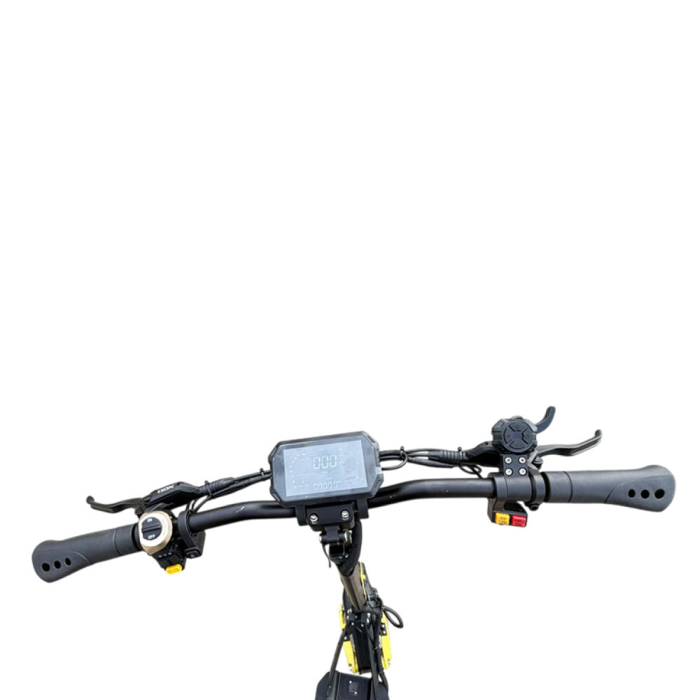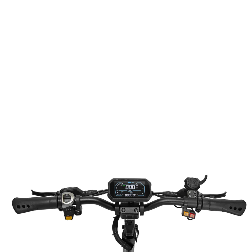 Информативный ЖК-дисплей на руле отображает скорость, заряд аккумулятора и режим работы, позволяя держать под контролем все важные параметры во время движения.