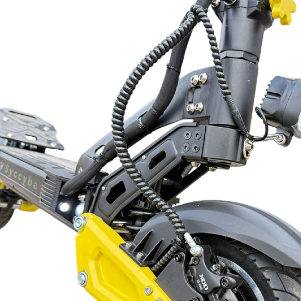 Syccyba Flash Mono — не просто электросамокат, а настоящий прорыв в персональной мобильности. Мощность устройства, стильный дизайн с яркими желтыми акцентами и продуманная функциональность делают его идеальным выбором как для повседневных поездок, так и для увлекательных приключений.