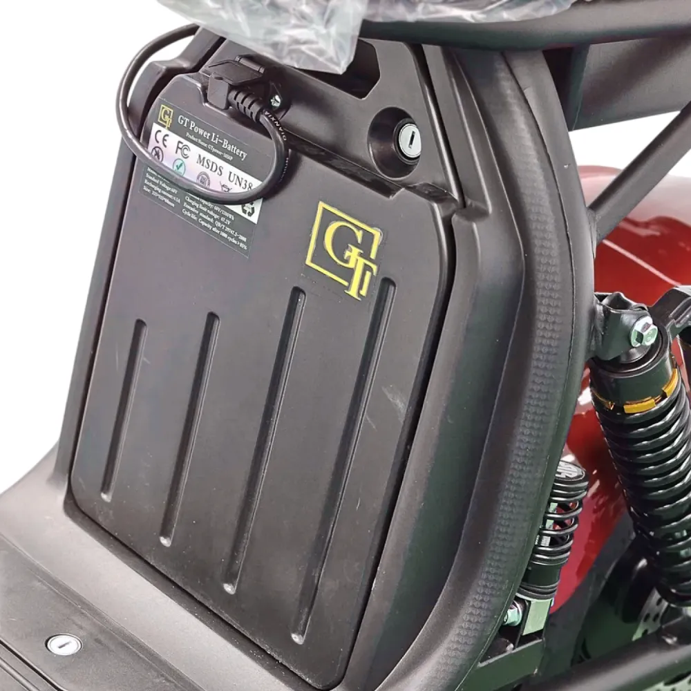 Электроскутер Citycoco GT X7 PRO в стильном красном цвете — это воплощение мощи и надежности для любителей бездорожья. Оснащенный двигателем мощностью 2000W и аккумулятором емкостью 20 Ah, он обеспечивает пробег до 50 км на одном заряде, развивая скорость до 45 км/ч. С максимальной нагрузкой в 200 кг, этот скутер идеально подходит для поездок вдвоем, особенно благодаря складным подножкам для второго пассажира.Скутер оснащен всеми необходимыми элементами освещения для безопасного передвижения: фарой, страбаскопами, стоп-сигналом и поворотниками спереди и сзади. Полная амортизация и гидравлические тормоза гарантируют комфортное и безопасное вождение на любых поверхностях. Большая дека для ног и широкие внедорожные колеса формата Citycoco делают его идеальным выбором для тех, кто ищет сочетание стиля, функциональности и высокой проходимости. Citycoco GT X7 PRO — ваш надежный спутник в любых условиях.