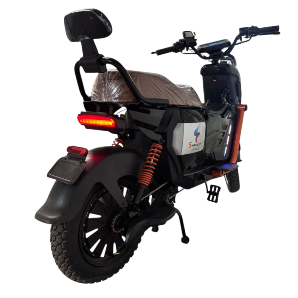 Для курьерской доставки, работы/прогулок с грузом; взрослые 18–55 лет со средним опытом (мощь требует навыков). Сиденье/подножки для двоих, багажник — для курьеров; не для ОТ (тяжёлый); не для ограниченных возможностей (высокая посадка).​