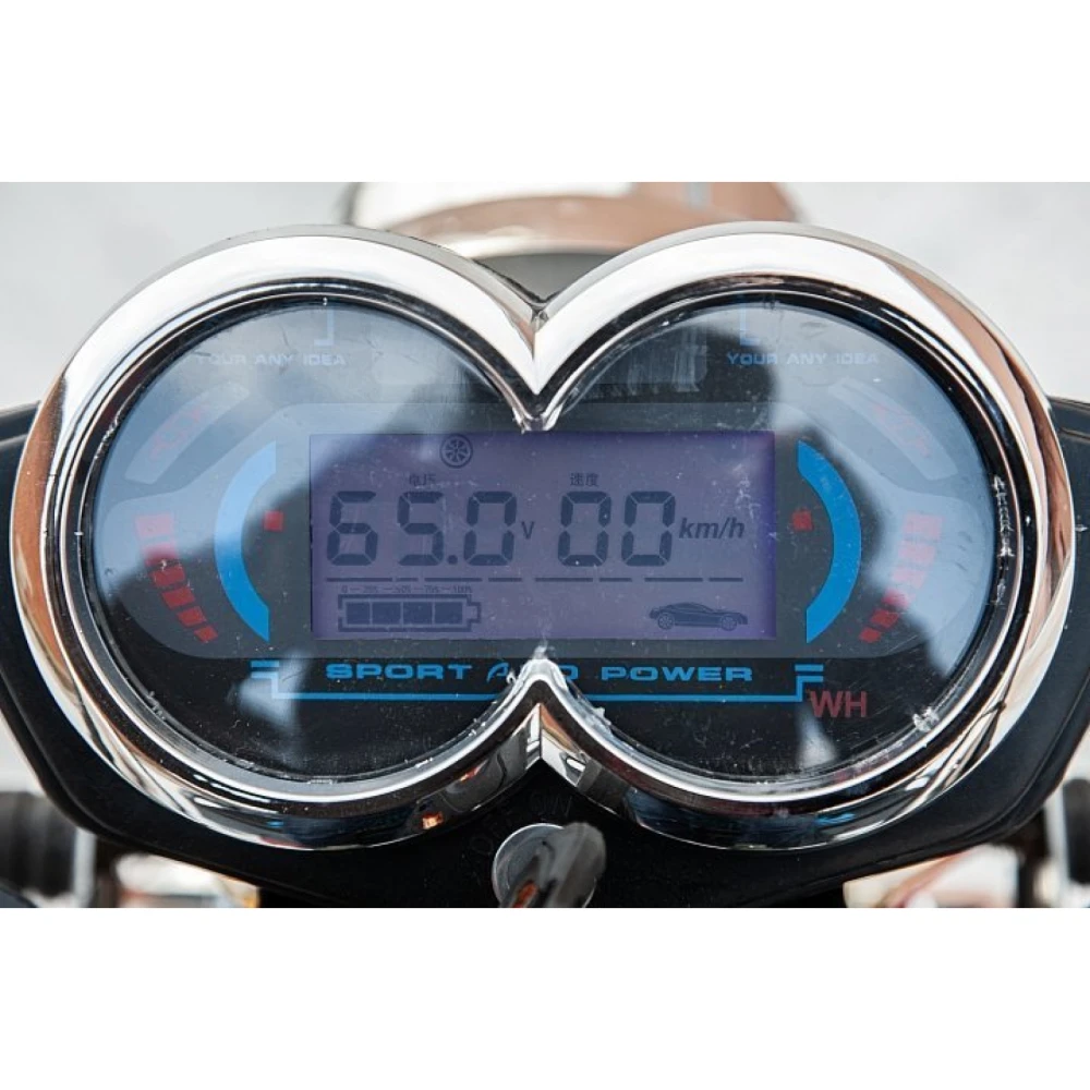 Модель оснащена мощным двигателем 1500 Вт, позволяющим развивать максимальную скорость 25 км/час. Усиленная рама техники выдерживает допустимую нагрузку до 1200 кг. В передней подвеске предусмотрены гидравлические амортизаторы для лучшего прохождения на дорогах любого покрытия. Благодаря отсутствию выбросов вредных для здоровья человека и окружающей среды веществ - транспортное средство одно из самых экологически чистых. Емкий аккумулятор позволяет проходить до 80 км пути на одном заряде. Пользователь экономит свое время, батарея быстро заряжается (8-10 часов). Всесезонность эксплуатации модели делает ее универсальной.