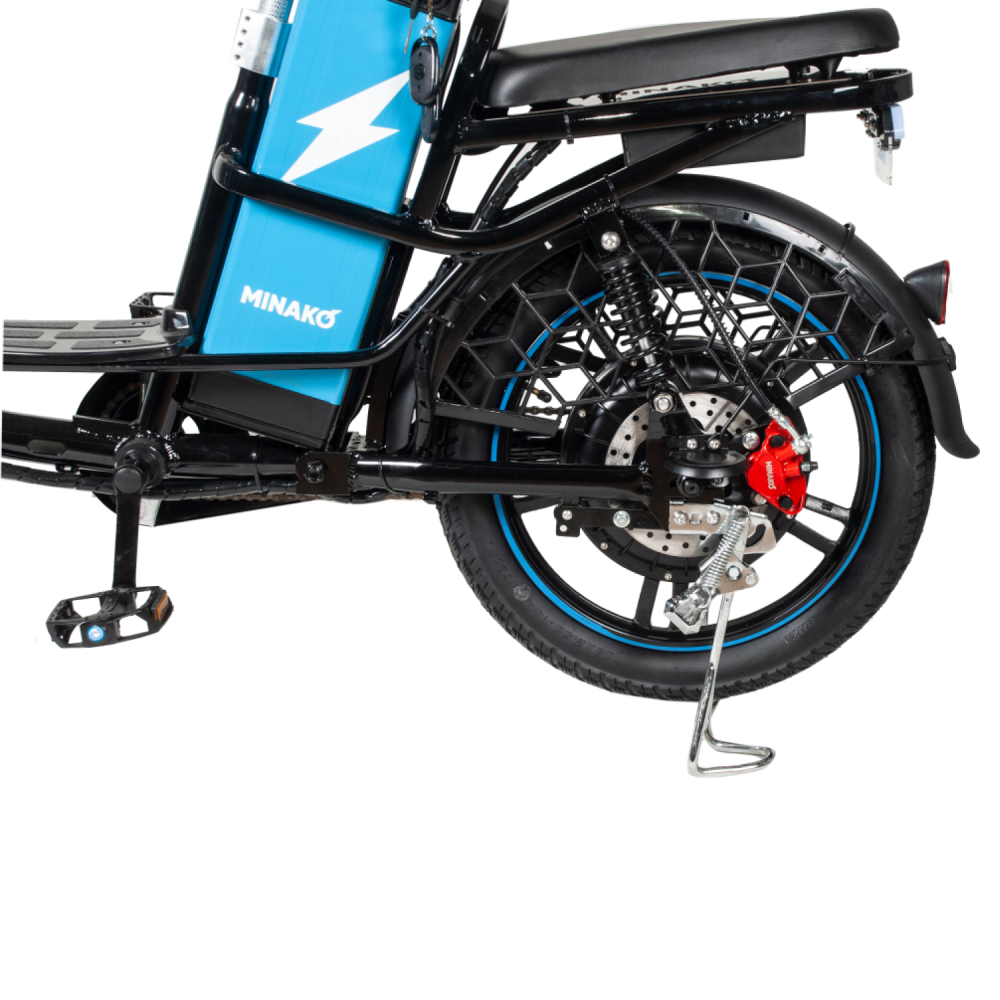 Особая особенность Minako V8 Pro Black 500W 60V12Ah заключается в наличии заднего гидравлического дискового тормоза, который обеспечивает надежное и безопасное торможение. Это особенно важно при высокой скорости и интенсивном движении.